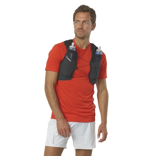 Le Salomon Sense Pro 5 Set pour hommes est un sac à dos de course fonctionnel. Ce sac à dos minimaliste est synonyme de confort et d'accès à vos essentiels de course sur la route. La conception empêche les frottements lors de la course. Le devant comporte deux poches fendues pour les bouteilles. Deux bouteilles Salomon Soft Flask de 500 ml sont incluses avec ce sac à dos. Les poches fendues pour les flacons ont également deux boucles qui aident à maintenir les bouteilles en place pendant vos courses. Le devant comporte diverses poches extensibles et poches zippées et vous permet d'accéder facilement aux produits dont vous avez le plus besoin. L'arrière dispose d'une plus grande poche pour les objets plus volumineux et a un volume de 5 litres. Le sac à dos a également un sifflet d'urgence. La taille du sac de tapis est facilement ajustée grâce à la fermeture élastique. La construction du sac à dos l'empêche de rebondir et assure une course sans soucis. Le dos du sac comporte également des boucles pour les bâtons de marche.