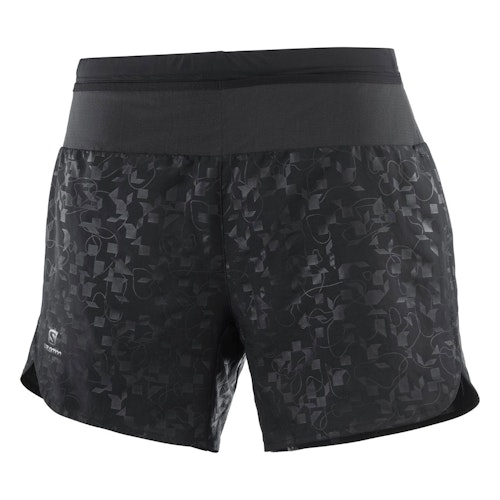 Le short Salomon XA pour femme est un short de course confortable. Le short est multifonctionnel et peut donc être utilisé à des fins très diverses, un bon exemple est le trail. Le short comporte deux poches sur les côtés. La poche à l'arrière a une fermeture éclair et est assez grande pour un smartphone. Le short de course comporte une bande serrée sur le dessus qui vous permet d'emporter vos essentiels de course. Il vous permet également d'adapter leur taille à vos préférences. Salomon est spécialisé dans le trail et sait qu'il est très important que les shorts sèchent rapidement.