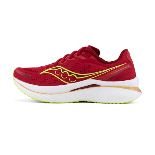 Référence: S20756-16 Type de produit: Chaussures de compétition Collections: Saucony Endorphin Couleur: Rouge Genre: Homme Marque: Saucony Type de chaussure: Neutre Amorti: Modéré / maximal Hauteur avant-pied: 28 mm Hauteur talon: 36 mm Réactivité: Modérée / forte Maintien: Minimal Largeur: Normal