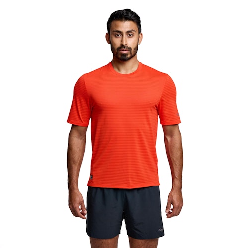 Enfilez ce T-shirt de running Saucony et poursuivez vos objectifs. Avec ce T-shirt, vous pouvez rapidement échapper à votre transpiration et rester au frais, même pendant les journées chaudes. De plus, la chemise est faite d'un matériau flexible pour une liberté de mouvement maximale. Avec ce T-shirt de Saucony vous êtes prêt pour toutes vos activités outdoor !
