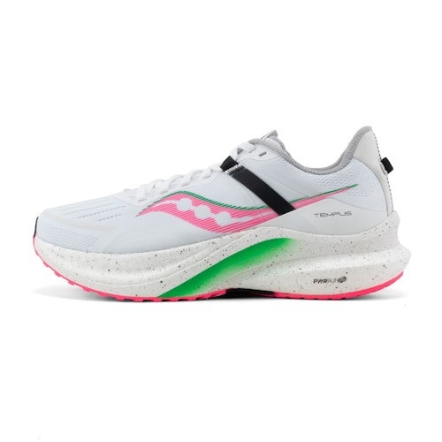La Saucony Tempus est une chaussure de running polyvalente pour les surpronateurs. Le tout nouveau Tempus est construit sur un système de guidage en super-mousse qui offre une course plus fluide et plus rapide.