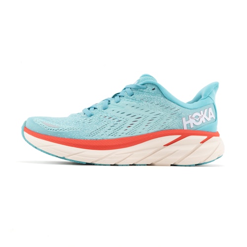 Der HOKA Clifton 8 (Wide) für Damen ist ein neutraler Laufschuh. Die neueste Ausgabe des beliebten Clifton-Modells bietet ein noch weicheres Lauferlebnis als sein Vorgänger. Dabei ist die 8. Ausgabe ganze 15% leichter und die Außensohle wurde im Vergleich zum Clifton 7 verbessert und widerstandsfähiger gestaltet.
