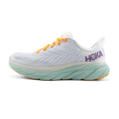 Der HOKA Clifton 8 (Wide) für Damen ist ein neutraler Laufschuh. Die neueste Ausgabe des beliebten Clifton-Modells bietet ein noch weicheres Lauferlebnis als sein Vorgänger. Dabei ist die 8. Ausgabe ganze 15% leichter und die Außensohle wurde im Vergleich zum Clifton 7 verbessert und widerstandsfähiger gestaltet.