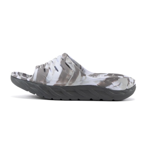 Die HOKA Ora Recovery Slide für Damen und Herren sind komfortable Slipper. Diese Schuhe wurden speziell entwickelt, um deine Füße zu verwöhnen und nach einem herausfordernden, langen Rennen bei der Erholung zu unterstützen. Die kultige, große Zwischensohle, die auch in den HOKA Laufschuhen steckt, kommt auch bei diesen Schuhen zum Einsatz.