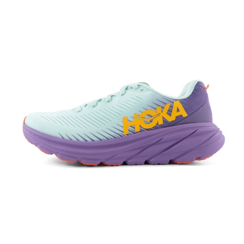 Die HOKA Rincon 3 für Damen sind neutrale Laufschuhe. Diese dritte Edition des Rincon-Modells ist ein leichter Trainingsschuh, der sich für das Laufen längerer Strecken eignet. Das Engineered Mesh-Obermaterial bietet dir gute Atmungsaktivität und ist ausgesprochen leicht. Dank den leichten Materialeigenschaften eignet sich dieser Schuh auch gut für schnellere Läufe. Die Zunge ist leicht und asymmetrisch gestaltet. Die Schlaufe an der Ferse kommt auch im Rincon 3 wieder zum Einsatz und ermöglicht einen komfortablen Einstieg.