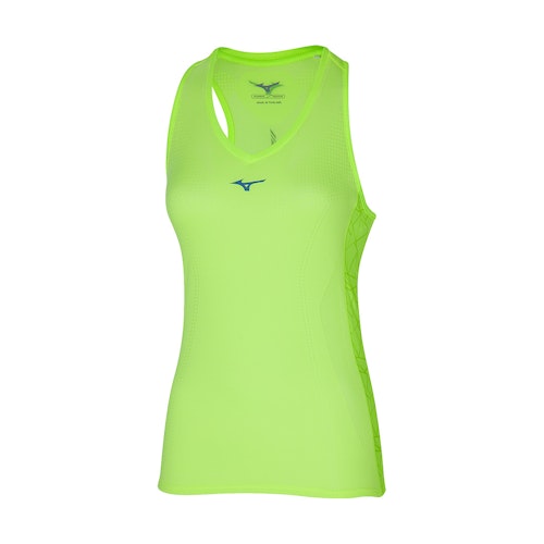 Das Mizuno Aero Singlet für Damen ist ein ärmelloses Laufshirt. Das Top stammt aus der Premium-Linie von Mizuno und eignet sich vor allem für besonders intensive Trainingseinheiten. Das ausgesprochen leichte Material leitet Feuchtigkeit zuverlässig weg, so dass du angenehm trocken und frisch bleibst. Dank der BlindStich-Technologie profitierst du von flachen Nähten, die Irritationen und Scheuern verhindern. Praktisch: Die reflektierenden Details sorgen für zusätzliche Sichtbarkeit.