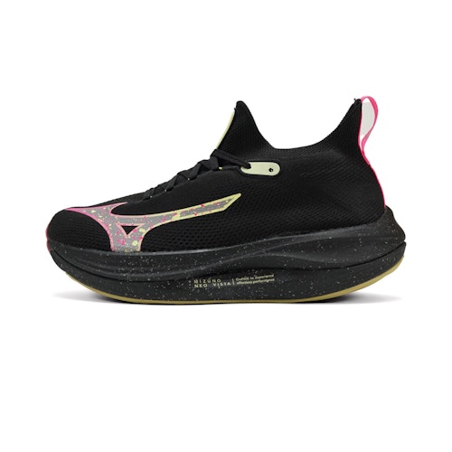 Der Schuh verfügt über ein Rocker-Profil, das auf das geschwungene Design der Sohle verweist. Dies sorgt für ein extrem geschmeidiges Schuhgefühl, stimuliert den Übergang vom Mittelfuß zum Vorfuß beim Laufen und reduziert so die Belastung der Wadenmuskulatur. Der Neo Vista verfügt über eine Enerzy NXT-Zwischensohle. Dieser Schaum ermöglicht es Ihnen als Läufer, mehr Dämpfung und Energierückgabe zu erleben. Enerzy NXT ist noch leichter als sein Vorgänger. Dank des Schaumstoffs genießen Sie eine verbesserte Flexibilität und Stabilität, gepaart mit belastbarem Vortrieb. Dieser Schaumstoff ist 15 % widerstandsfähiger als der in vielen anderen Laufschuhen verwendete Standard-EVA-Schaum. In der Zwischensohle wurde außerdem eine Wave-Platte platziert, eine Kunststoffplatte, die Teil der Wave-Technologie ist. Die Platte ist gewellt und sorgt für eine stabile Landung und zusätzliche Widerstandsfähigkeit beim Start. Das runde Design der Sohle orientiert sich an Spikes, bei denen auch die Ferse stark erhöht ist. Dadurch können Sie bei Müdigkeit gut auf dem Mittel- und Vorfuß landen. Dies nennt sich Smooth Speed Assist, damit Sie bis zum Ziel weiterhin einen idealen Übergang schaffen.