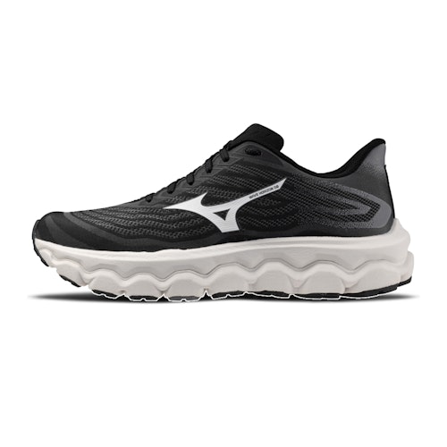 Das Obermaterial des Wave Horizon 9 besteht aus leichtem Mesh-Gewebe, das Feuchtigkeit vom Fuß ableitet und so für ein trockenes und kühles Laufgefühl sorgt. Das Mesh-Gewebe ist teilweise aus recycelten Materialien hergestellt. Der Schuh verfügt außerdem über eine bequeme, herausnehmbare Innensohle.Außensohle