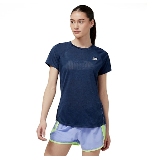 Artikelnummer: WT21262NIH Produktart: Kurzarm-Laufshirts Passform: Reguläre Passform Eigenschaften: Reflektierend Farbe: Blau Geschlecht: Damen Marke: New Balance