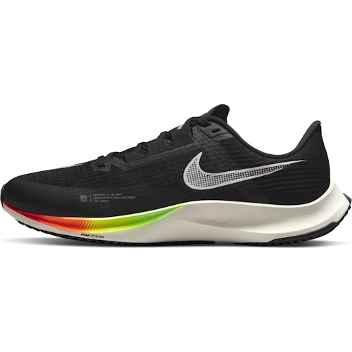 Bei dieser dritten Modell-Version kommt eine weichere Version des Cushlon-Schaums zum Einsatz, um eine bessere Dämpfung zu erzielen. Gemeinsam mit dem Air Zoom-Element unter dem Vorfuß sorgt dies für ein reaktionsschnelles, federndes Lauferlebnis. Der traditionelle Kragen gewährleistet auch im Fersenbereich eine bequeme Passform. Die Gummilaufsohle bietet eine Extraportion Festigkeit.