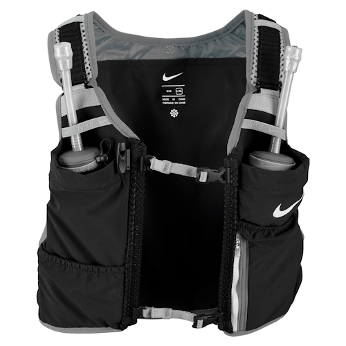 Die Nike Kiger Vest 4.0 für Herren ist ein leichter Rucksack. Das Material ist atmungsaktiv und passt sich deinem Körper perfekt an. Die Passform kann individuell angepasst werden und du profitierst von verschiedenen Aufbewahrungsmöglichkeiten. An der Vorderseite befinden sich zwei Fächer für zwei 500 ml-Trinkflaschen (im Lieferumfang enthalten) sowie drei kleinere Fächer für persönliche Gegenstände. Hier findest du auch Schlüsselringe und eine Sicherheitspfeife. Auf der Rückseite kannst du eine 2 Liter-Trinkblase (nicht im Lieferumfang enthalten) aufbewahren und dank der speziellen Befestigungsoptionen kannst du auch leichtgewichtige Trail-Stöcke transportieren.