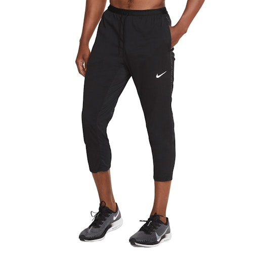 Die Nike Phenom Elite Run Division für Herren ist eine Sporthose in 7/8-Länge. Die Trainingshose verfügt über verstellbare Verschlüsse am Beinabschluss, die das An- und Ausziehen erleichtern. Das leichte, gewebte Material punktet mit wasserabweisenden Eigenschaften. Darüber hinaus verfügt es an wärmeempfindlichen Stellen über Perforationen, die angenehme Belüftung sicher stellen. Druckknöpfe an den Waden ermöglichen eine individuelle und situationsangepasste Passform. So kannst du die Hose für deinen Lauf etwas enger stellen und nach deinem Workout angenehm locker und casual tragen. Auch praktisch: Die Hose punktet mit der innovativen Dri-FIT-Technologie ausgestattet, die dich trocken hält.