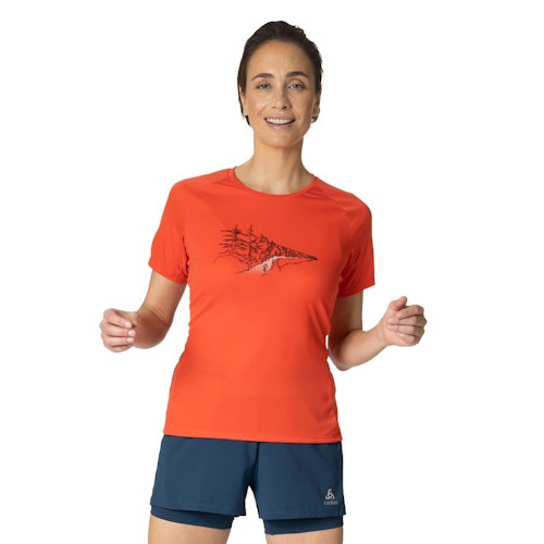 Artikelnummer: 313961-30838 Produktart: Kurzarm-Laufshirts Passform: Reguläre Passform Farbe: Orange Geschlecht: Damen Marke: Odlo