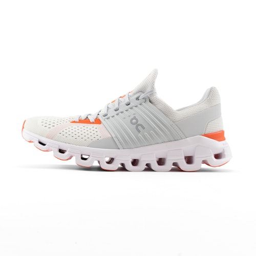 Die On Cloudswift für Herren sind neutrale Allround-Laufschuhe. Der Cloudswift ist ein brandneues Modell der Premium-Marke On. Diese leichtgewichtigen Laufschuhe eignen sich perfekt für deine täglichen Läufe mit einem durchschnittlichen bis höheren Tempo, vor allem in urbaner Umgebung. Das Engineered Mesh-Obermaterial besteht aus recycelten Materialien, so dass du einen positiven Beitrag in Sachen Nachhaltigkeit leisten kannst. Das Material vermittelt jede Menge Einstiegskomfort und umschließt deine Füße ausgesprochen gut. Im Bereich von Vor- und Mittelfuß sind Verstärkungen angebracht, die zusätzliche Unterstützung bieten. Die Helion-Zwischensohle mit CloudTec-Technologie erzeugt im Vorfußbereich eine verbesserte Dämpfung. Im Bereich der Ferse federn größere Clouds, die "Wölkchen", die du in der Zwischensohle sehen kannst, den Aufprall beim Aufsetzen effektiv ab und geben dir Energie für deinen Abstoß mit. Für einen echten Push nach vorne. Das überarbeitete Speedboard trägt ebenfalls zu diesem energetischen und reaktiven Gefühl bei. Die Rocker-Konstruktion sorgt für eine gebogene Form von Zwischen-und Außensohle – für ein geschmeidiges, schnelles und müheloses Abrollen. Die Gummilaufsohle stellt Grip und Traktion auf nassen und trockenen Straßen sicher. Mit dem neuen On Cloudswift fühlt sich Laufen auf der Straße noch leichter an - überzeuge dich selbst!