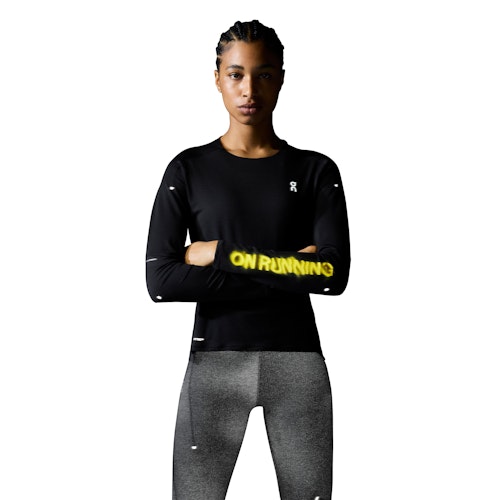 Artikelnummer: 1WE30220553 Produktart: Langarm-Laufshirts Passform: Reguläre Passform Eigenschaften: Reflektierend Farbe: Schwarz Geschlecht: Damen Marke: On Material: 90% recyceltes Polyester 10% Elastan