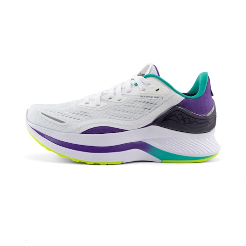 Der Saucony Endorphin Shift 2 für Damen ist ein komfortabler Allround-Laufschuh. Der Shift 2 eignet sich für deinen täglichen Run und wurde aus recycelten Materialien hergestellt. Das FORMFIT-Obermaterial ist leicht und schmiegt sich angenehm an deine Füße. Reibungen, Irritationen und Druckpunkte gehören der Vergangenheit an. Die Fersenkappe ist an der Außenseite mit einer Kunststoffschicht verstärkt. Zusammen mit der verstärkenden Stickerei auf dem Mittelfuß sorgt dies für eine Extraportion Stabilität.