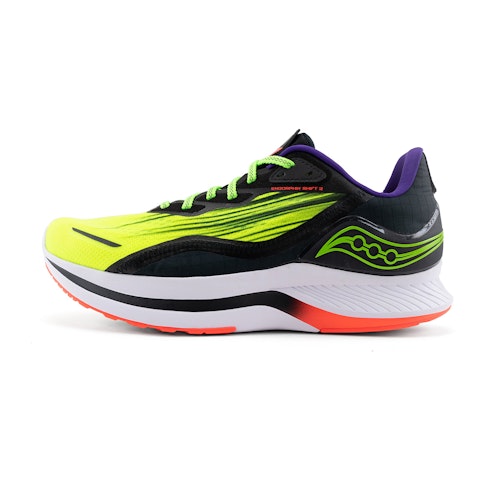 Der Saucony Endorphin Shift 2 für Herren ist ein komfortabler Allround-Laufschuh. Der Shift 2 eignet sich für deinen täglichen Run und wurde aus recycelten Materialien hergestellt. Das FORMFIT-Obermaterial ist leicht und schmiegt sich angenehm an deine Füße. Reibungen, Irritationen und Druckpunkte gehören der Vergangenheit an. Die Fersenkappe ist an der Außenseite mit einer Kunststoffschicht verstärkt. Zusammen mit der verstärkenden Stickerei auf dem Mittelfuß sorgt dies für eine Extraportion Stabilität.