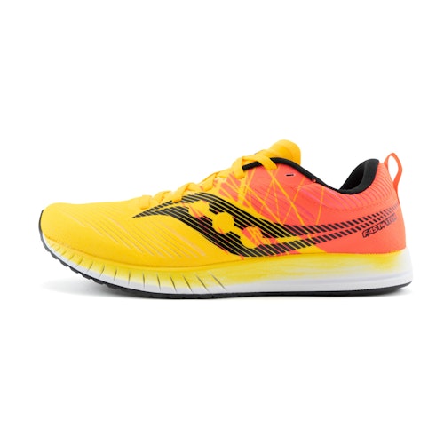 Artikelnummer: S29053-16 Produktart: Wettkampf-Laufschuhe Farbe: Gelb Geschlecht: Herren Marke: Saucony Schuhtyp: Stabil Dämpfung: Wenig / durchschnittlich Vorfußhöhe: 14 mm Absatzhöhe: 18 mm Sprengung: 4 mm Reaktionsfähigkeit: Durchschnittlich / viel Unterstützung: Wenig Gewicht: ca. 193 Gramm Breite: Normal