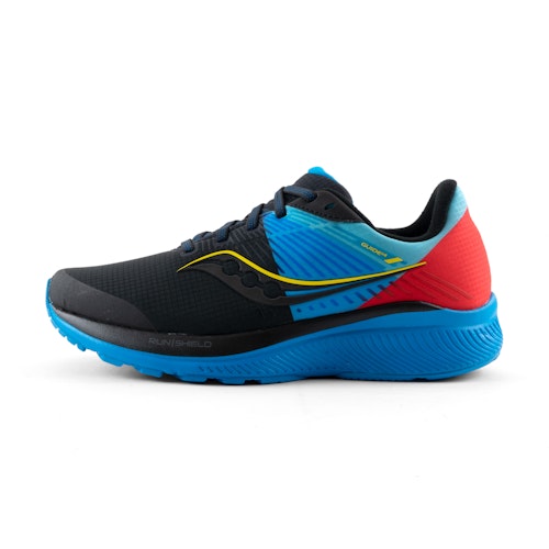 Der Saucony Guide 14 Runshield für Herren ist ein Allround-Schuh für überpronierende Läufer. Die Schuhe aus der Runshield-Kollektion verfügen über ein wasserabweisendes Obermaterial, um deine Füße trocken zu halten. Auch die Außensohle besteht aus einem speziellen Straßen- und Trail-spezifischen Material, damit du bei Wind und Wetter den gewünschten Grip behältst.