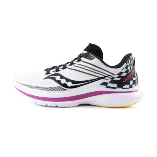 Die Saucony Kinvara 12 für Damen sind neutrale Wettkampf-Laufschuhe. Der Kinvara ist im Wettbewerbsumfeld eine bekannte Größe. Darüber hinaus lässt er sich aber auch prima als schneller Trainingsschuh einsetzen. Mit diesen Laufschuhen kannst du viele Kilometer unter hohem Tempo laufen. Diese 12. Ausgabe des Modells hat ein großes Update erhalten, was schon auf den ersten Blick im Look erkennbar ist.