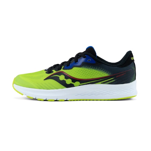Die Saucony Ride 14 für Kinder sind neutrale Allround-Laufschuhe. Der Ride ist ein vielseitiger Laufschuh, der sich perfekt für deinen täglichen Run eignet. Die 14. Ausgabe des Ride punktet jetzt mit einem schnelleren Look. Das FORMFIT-Obermaterial schmiegt sich angenehm und ohne zu kneifen um deine Füße. Dadurch profitierst du von einem stabilen und selbstsicheren Laufgefühl. Das Mesh-Material ist besonders atmungsaktiv und hält die Füße kühl.