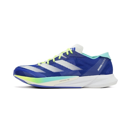 SKU: ID3631 Artikelgrupp: Tävlingsskor Kollektioner: adidas Adizero Färg: Blå Kön: Herr Märke: adidas Skotyp: Neutral Dämpning: Minimum / måttlig Höjd framfot: 20 mm Hälhöjd: 28 mm Drop: 8 mm Lyhördhet: Minimum / måttlig Stöd: Lite Vikt: 207 g Bredd: Normal Vikt: 200-300 gram Stack height: 20-30mm (Medium)
