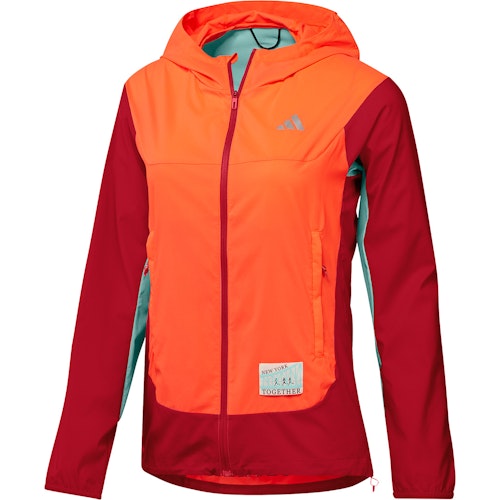 New York City Jacket är en bekväm löparjacka med huva. Denna lätta löparjacka är till för att skydda dig mot kalla vindbyar och är vattenavvisande under lätta regnskurar. Bra att ha på kallare dagar där du behöver ett extra lager. Hur får detta plagg sin vattenavvisande egenskap? Tack vare en DWR-behandling (Durable Water Repellent) är plagget permanent vattenavvisande. Med denna löparjacka från adidas är du redo att pressa dig själv till gränsen och uppnå personliga mål!New York City-paketet överbryggar klyftan mellan dåtid och nutid när det gäller kvinnors representation i tävlingar. Designen har en retrolook och har inspirerade färger från de fem NYC-broarna. Egenskaperna hos adidas New York City Jacket i en överblick:- Lätt löparjacka