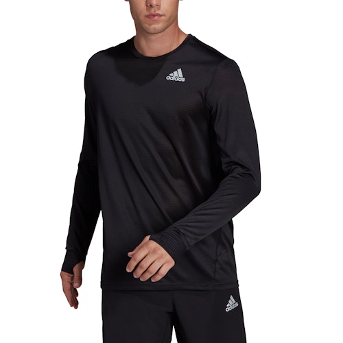 The Own The Run Shirt är en långärmad löpartröja. Climacool-materialet erbjuder optimal ventilation och leder effektivt bort fukt. Det återvunna materialet känns mjukt mot huden och ger optimal rörelsefrihet. Tumhålen i ärmarna håller tröjan på plats under löpningen.