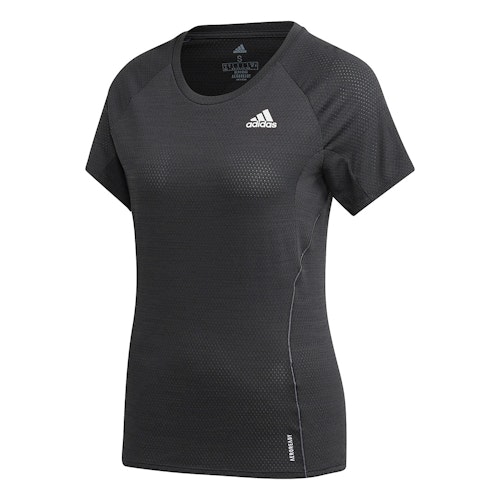 Adidas Runner T-shirt för kvinnor är en kortärmad springtopp. Toppen är gjord av återvunnet material för att lätta upp trycket på miljön och för att spara naturresurser. Materialet känns mjukt på huden och är tyst stretchigt. Den något anpassade passformen ger ett snyggt utseende och erbjuder massor av rörelsefrihet.