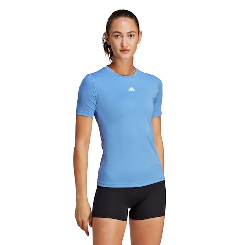 SKU: IC1833 Artikelgrupp: Kortärmade tröjor Passform: Slim Färg: Blå Kön: Dam Märke: adidas