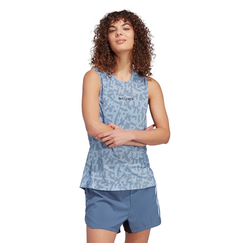 Terrex Agravic Singlet är en bekväm löpartröja utan ärmar. Singleten är helt gjord av mesh, vilket säkerställer att du håller dig torr och bekväm under din löprunda under varma dagar. Aeroready-tekniken hanterar fukt för att hålla dig torr och bekväm. Tillverkad av återvunnet material.