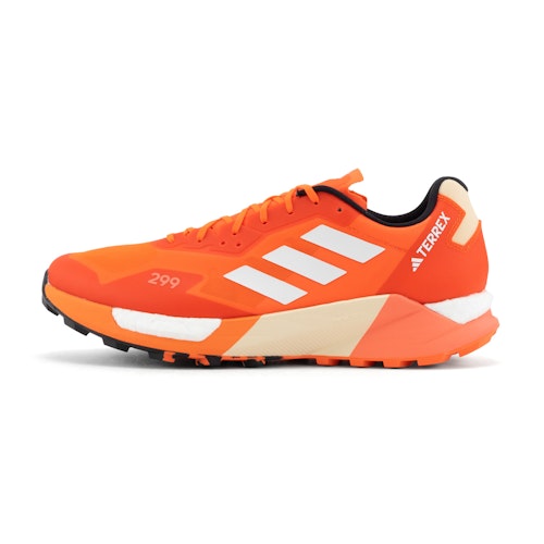 SKU: HR1081 Artikelgrupp: Trailskor Kollektioner: adidas Terrex Agravic Färg: Orange Kön: Herr Märke: adidas Skotyp: Neutral Dämpning: Måttlig / maximal Höjd framfot: 30 mm Hälhöjd: 38 mm Drop: 8 mm Lyhördhet: Minimum / måttlig Stöd: Max Vikt: 299 g Platta: Kolfiberplatta Trailtyp: Ultra trail, Traillopp Bredd: Normal