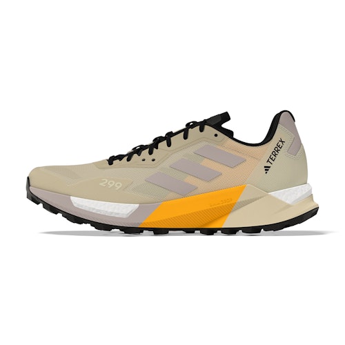Primegreen Mesh-överdelen ger bra andningsförmåga för att hålla fötterna svala, men ger också motståndskraft mot nötning från stötar från stenar och grenar. Runt mellanfoten erbjuder ovandelen en tät passform. Detta ger dig riktat stöd. Vid framfoten är ovandelen lite rymligare, så att tårna har all rörelsefrihet. Denna ovandel kompletteras med en vadderad plös. Detta fördelar trycket från snören och ger en behaglig känsla.