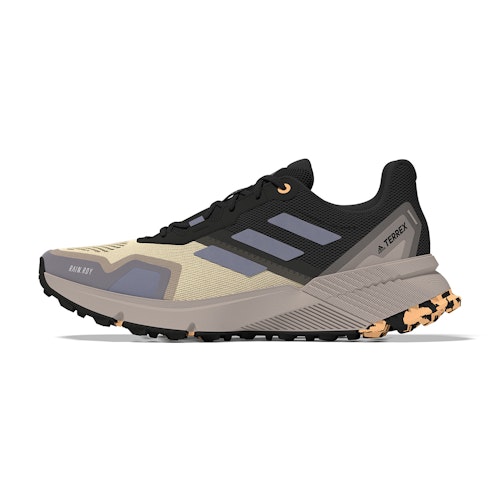 adidas Terrex Soulstride Rain RDY är neutrala trailskor för långa sträckor. Ovandelen är gjord av teknisk stickad mesh. Ovandelens andningsförmåga håller dina fötter bekväma. RAIN.RDY-materialet tätar vatten för att hålla dina fötter torra i våta förhållanden. Dessutom består 50 % av ovandelen av återvunnen råvara.