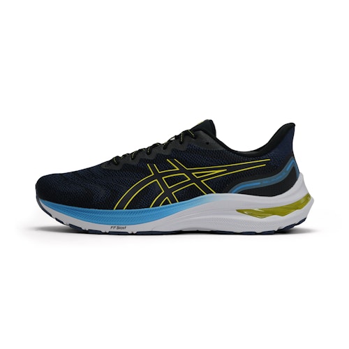 Med denna sko kommer du att uppleva ett energiskt utseende när du går, delvis tack vare FF BLAST™-dämpningen. Detta skum är lätt och extremt bekvämt och ger en elastisk, energisk dämpning. Förutom skummet kommer ASICS unika GEL™-teknologi att hjälpa till att absorbera stöten från varje steg, vilket gör landningen mjukare. Skon har också GUIDANCE LINE™-teknologin, ett bågformat spår. Detta spår gör att skosulan kan böjas under löpning. Målet är att stimulera flexion och extension av foten vid tåbaslederna. Fördelarna med denna teknik? Bättre passform, mindre belastning på fötterna och mer komfort vid löpning. 3D SPACE CONSTRUCTION™-funktionen är anpassad till formen på foten på både män och kvinnor. Tack vare denna funktion har häldisken en skräddarsydd passform, anpassad efter kön. Fördelen är mer kompression under en hällandning, vilket säkerställer en mjukare stegavveckling. Till råga på allt har denna sko även en ORTHOLITE™ X-55 innersula. Denna innersula erbjuder mjuk entrékomfort och ger därför långvarig dämpning. ORTHOLITE™ X-55 har ett skum med öppna celler som ser till att skon andas på insidan och håller dina fötter svala.