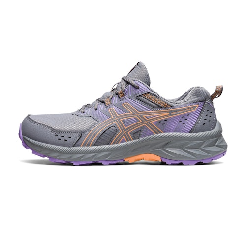ASICS GEL-VENTURE 9 är en multifunktionell sko som kan betraktas som en riktig road-to- trail-sko. Denna modell erbjuder bra dämpning på vägen och bra grepp på ojämna underlag. Denna sko har de väsentliga egenskaperna för att vara funktionell på både asfalterade och oasfalterade stigar. Äventyr väntar med denna trailsko, redo att följa med dig på grova ytor!