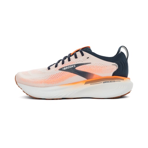 Adrenaline GTS 25 har Brooks DNA LOFT v3-skum i mellansulan. Detta skum är otroligt mjukt och innovativt jämfört med den tidigare versionen. Nitrogen är integrerat i dämpningsmaterialet för att optimera responsivitet och dämpning. Skummet har Brooks DNA-teknik, som anpassar sig till din löpstil. Detta ger skon ett dämpande skum som säkerställer en smidig övergång från häl till tå. GuideRails® i den här skon hjälper dina höfter, knän och leder att röra sig naturligt. Som ett resultat ger GuideRails® vägledning för överpronerande fotledare och styr dina fötter i rätt linje och rörelse. Detta minskar trycket på knäna och minskar risken för skador. För att säkerställa att du får rätt stöd under dina löprundor använder skon GuideRail™-stödsystemet. Denna teknik är utformad för att ge stöd och pronationskontroll när du börjar bli trött, men påverkar inte din normala löpning.Övre
