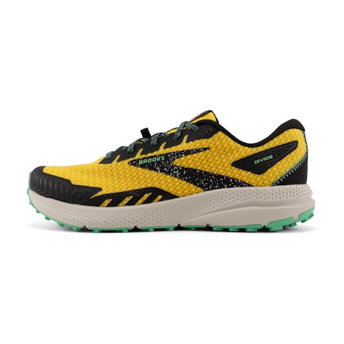 SKU: 110405-1D-752 Artikelgrupp: Trailskor Kollektioner: Brooks Divide Färg: Gul Kön: Herr Märke: Brooks Skotyp: Neutral Dämpning: Minimum / måttlig Höjd framfot: 23 mm Hälhöjd: 31 mm Drop: 8 mm Lyhördhet: Måttlig Stöd: Lite Vikt: 309 g Specifikationer: Tåskydd Längd på traildubbar: Låg (0 – 3 mm) Trailtyp: Road to trail, Mjuk underlag Bredd: Normal Vikt: 300+ gram Stack height: 30-40mm (Hög)