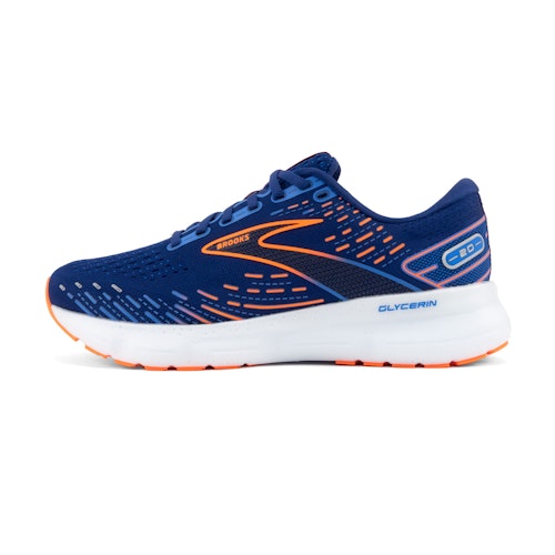 SKU: 110382-2E-444 Artikelgrupp: Allround löparskor Kollektioner: Brooks Glycerin Färg: Blå Kön: Herr Märke: Brooks Skotyp: Neutral Dämpning: Max Höjd framfot: 24 mm Hälhöjd: 34 mm Drop: 10 mm Lyhördhet: Lite Stöd: Max Bredd: Wide