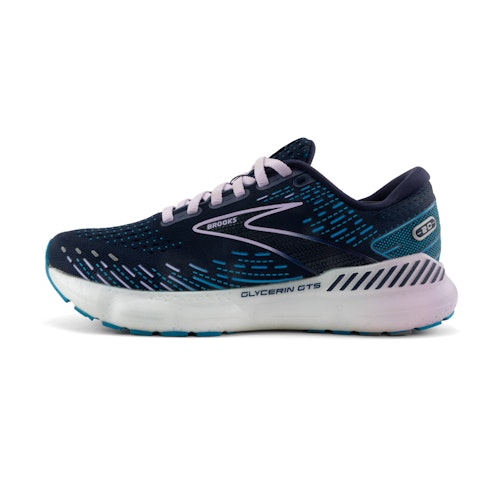 Brooks Glycerin GTS 20 för kvinnor är allround löparskor för överpronatorer. Dessa supermjuka Glycerin GTS 20s har designats för att ge komfort och mjuk dämpning under dina löpturer. Ovandelens nya pluche och andningsbara design är gjord av luftnät som ger en åtsittande passform som bekvämt håller fötterna på plats. Ovandelen har förstärkts på strategiska ställen för att ge mer struktur och riktat stöd till fötterna. På andra ställen är ovandelen mer flexibel och ger därigenom mer rörelsefrihet.