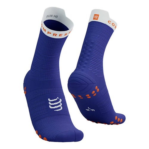 Pro Racing Socks V4.0 Run High är bekväma strumpor med hög kompression som är idealiska för din dagliga löpning. De innehåller silikoninlägg runt insidan av fållen som förhindrar att strumpan glider ner.