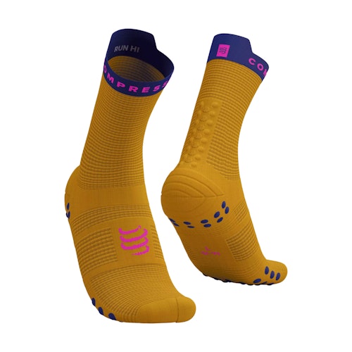 Pro Racing Socks V4.0 Run High är bekväma strumpor med hög kompression som är idealiska för din dagliga löpning. De innehåller silikoninlägg runt insidan av fållen som förhindrar att strumpan glider ner.