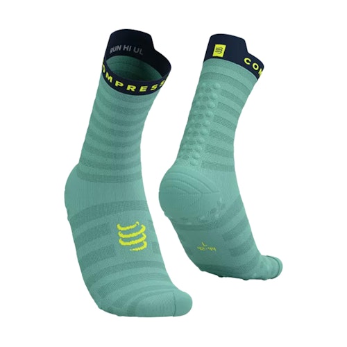 Pro Racing Socks V4.0 Ultralight Run High är bekväma strumpor med hög kompression som är idealiska för din dagliga löpning. De innehåller silikoninlägg runt insidan av fållen som förhindrar att strumpan glider ner.