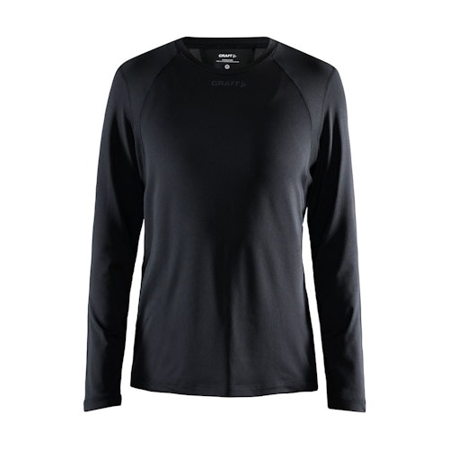 Craft ADV Essence Shirt för kvinnor är en löpartopp med långa ärmar. Toppen är gjord av mjukt material som är mycket andningsbart. Detta gör denna topp till det perfekta baslagret för din löpkläder. Toppen har en skräddarsydd passform. Materialet är mycket töjbart och följer kroppen i sina rörelser. Nätpanelerna säkerställer hög andningsförmåga.