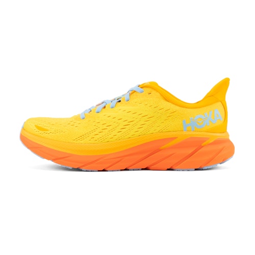 HOKA Clifton 8 är neutrala löparskor. Den senaste modellen av den populära Clifton erbjuder en ännu mjukare löptur än sin föregångare. Clifton 8 är också 15 % lättare och yttersulan har förbättrats och gjorts mer hållbar jämfört med Clifton 7.