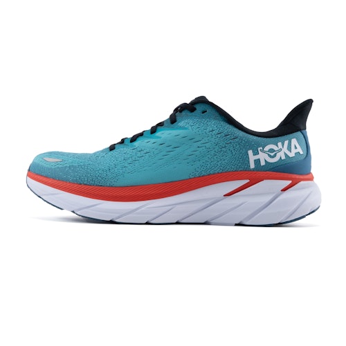 HOKA Clifton 8 för män är neutrala löparskor. Den senaste modellen av den populära Clifton ger en ännu mjukare åktur än sin föregångare. Clifton 8 är också 15% lättare och yttersulan är mer hållbar jämfört med Clifton 7.