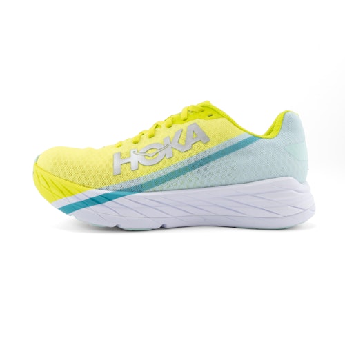 HOKA Rocket X för män och kvinnor är en neutral tävlingssko. Denna nyaste HOKA-modell kan ses som efterföljaren till Carbon Rocket och Carbon X-modellerna. Rocket X är en lättviktsracer som har designats speciellt för att springa korta sträckor med höga hastigheter. Vill du springa ditt snabbaste 10 km eller halvmaraton någonsin? Då är Carbon Rocket din favoritsko. Den mycket tunna ovandelen i mesh ger hög andningsförmåga och passar smidigt runt fötterna. Hälen och plösen har mer struktur än de flesta andra tävlingsskor. Tack vare denna extra struktur kommer du att uppleva mycket mer komfort samtidigt som du bara lägger till lite vikt. HOKA Rocket X väger bara 210 gram i amerikansk storlek 9.
