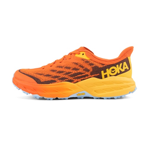 HOKA Speedgoat 5 för män är neutrala trailskor. Löparskorna har blivit ännu lättare och idealiska att bära när du springer tekniska och utmanande stigar. Speedgoat är en av HOKAs mest populära modeller på grund av dess mångsidighet.