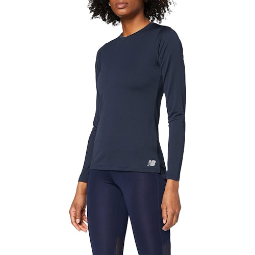 SKU: WT11204ECL Artikelgrupp: Långärmade tröjor Passform: Standard Färg: Blå Kön: Dam Märke: New Balance Material: 100% polyester