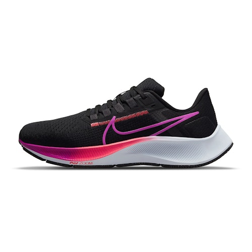 Nike Air Zoom Pegasus 38 för kvinnor är neutrala, allround löparskor. Pegasus är Nikes äldsta löparskomodell. Och föga förvånande också en av Nikes populäraste. Pegasus är idealisk för dina dagliga löpturer, men kan också användas för att springa långa uthållighetslopp. Den nya versionen av Pegasus förblir trogen sina rötter och har fortfarande den klassiska Pegasus-looken. Den smala passformen ger lite mer utrymme vid framfoten och tack vare detta får dina tår lite vickningsutrymme.
